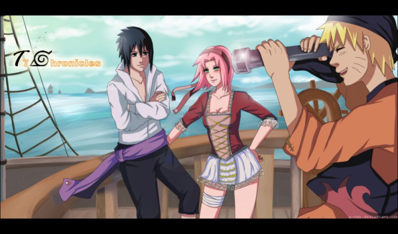 | Неразлучная троица деревни скрытого листа отправилась в путешелтвие по морю..